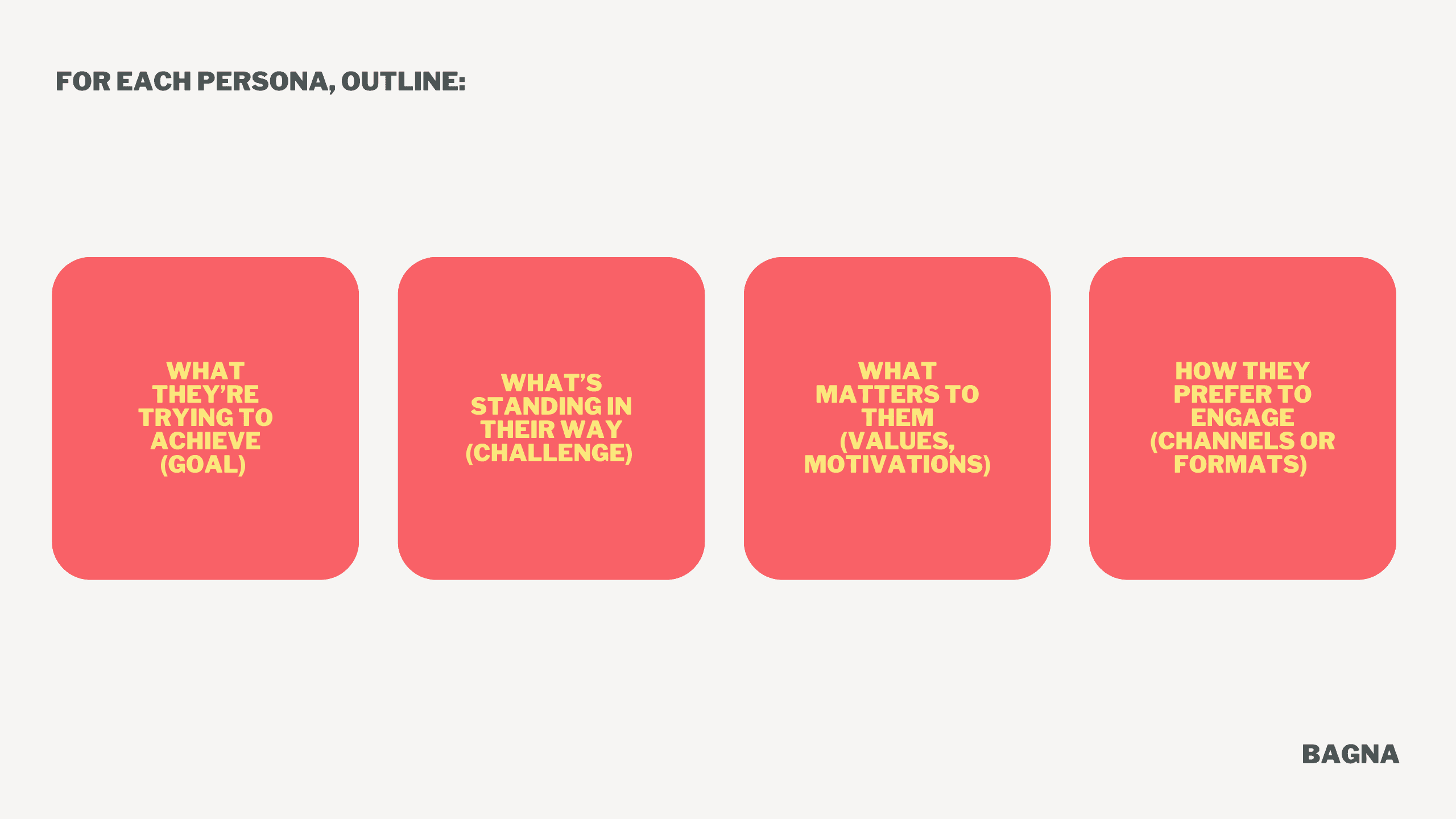 Creating personas is only useful if they help you make better decisions. This is where theory becomes action: your personas should shape what you say, how you say it, and where you show up.